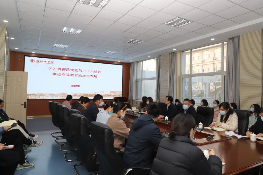 2022年12月7日,在科技楼B205会议室,学校党委副书记张建华为公共卫生学院研究生党支部进行党的二十大精神宣讲。