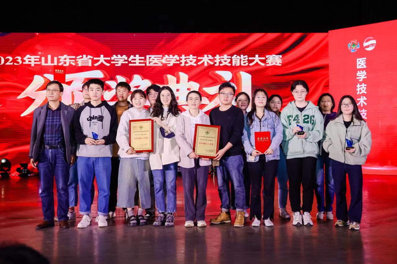 5月6日,预防医学专业学生在2023年山东省大学生医学技术技能大赛中取得了令人骄傲的成绩, 在A、B赛道上均获得团体一等奖,在A赛道上获单项奖3项, 在B赛道上获单项奖1项。