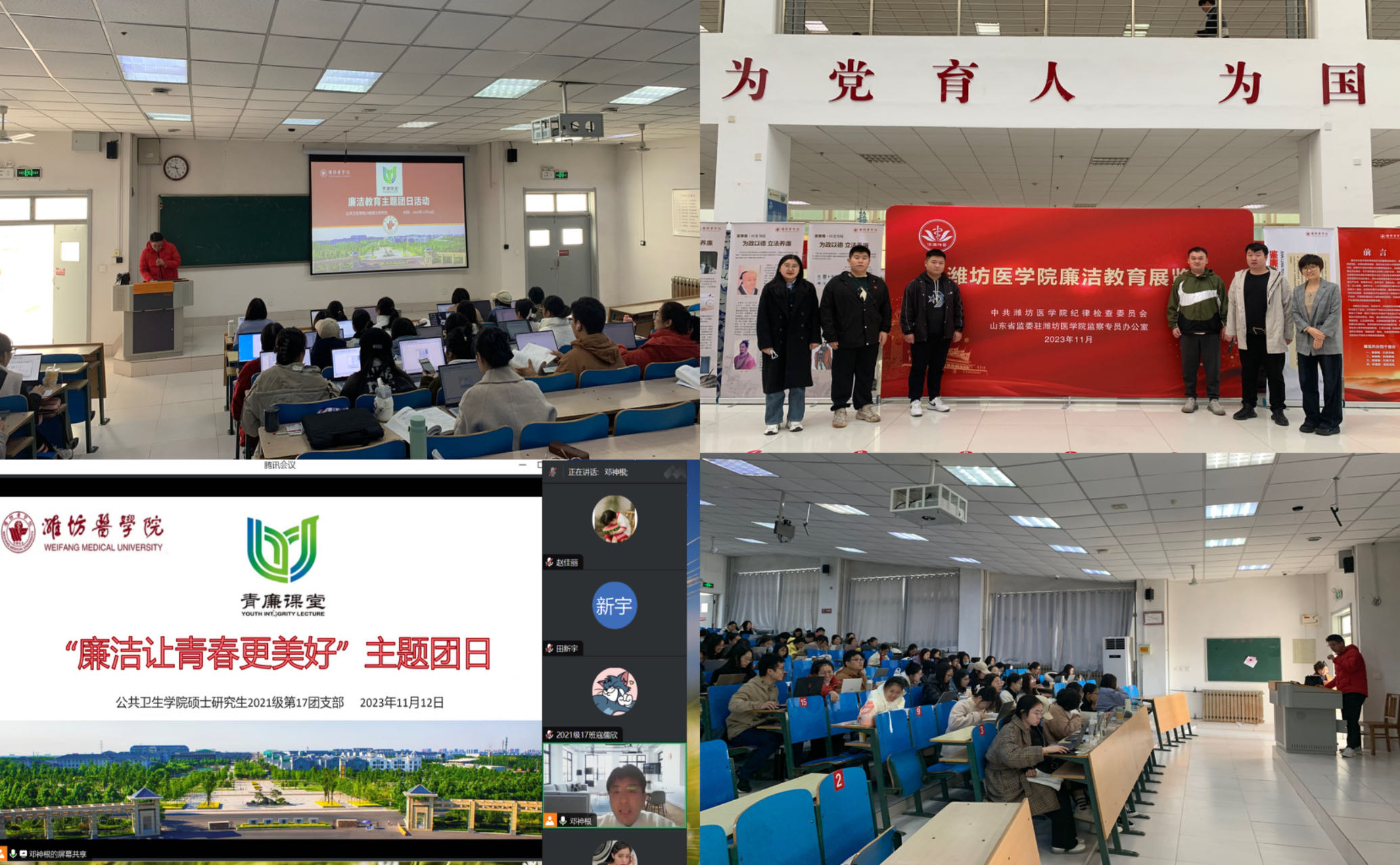 各支部通过介绍“青廉课堂”的含义、青年廉洁教育的意义,集体学习《清风传家》“人民英雄”张伯礼院士故事短片,集体观看廉政教育警示视频,学习贯彻习近平总书记关于廉洁文化的重要论述,引导同学们坚定理想信念、遵守法律法规、笃行廉洁修身。