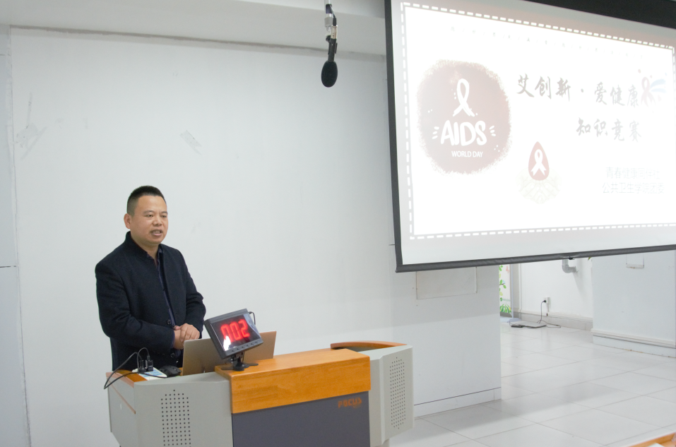 今年的12月1日是第36个世界艾滋病日,为了学习贯彻党的精神,认真落实教育规划纲要,培养大学生树立正确的人生观,远离疾病,关爱生命。预防医学党支部携手校医院及预防医学专业学生在乐道济世书院青春健康俱乐部举办“艾创新,爱健康”知识竞赛活动。校医院院长谢瑞柱与预防医学党支部成员参加。