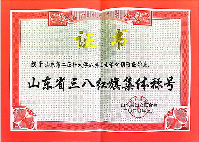 3月2日,山东省各界妇女纪念“三八”国际妇女节表彰会在济南召开。山东第二医学大学公共卫生学院预防医学系荣获“山东省三八红旗集体”荣誉称号。山东省高校仅有我校和山东航空学院获此荣誉,我校公共卫生学院预防医学党支部书记、预防医学系主任王春平作为高校代表上台领奖。