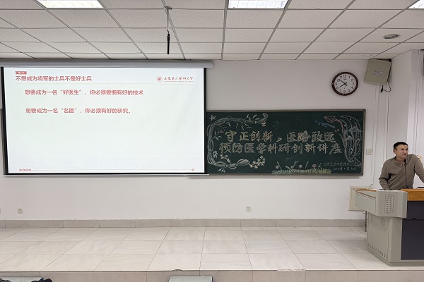 作为学校 “全环境立德树人” 示范学院,公共卫生学院将科研创新讲座作为科研育人的重要推力,充分发挥专业课教师的育人主体责任,针对学生科研诉求开展 “订单式” 精准研训,构建师生全天候互动的校园教学浸润微环境,全方位助力学生提升科研意识与创新实践能力。